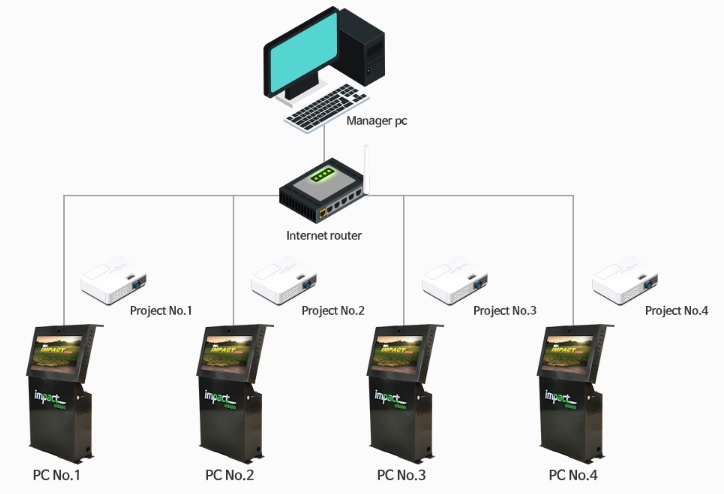 Với hệ thống điều khiển trung tâm cho phép có thể kết nối tất cả các phòng tập ở gần 1 khu vực cùng với nhau, và cũng có thể điều khiển từ xa, bật tắt máy tính, máy chiếu, cùng phần mềm quản lý, check in, check out. Hệ thống thích hợp cùng với các mô hình kinh doanh phòng golf 3d với nhiều trạm khác nhau.